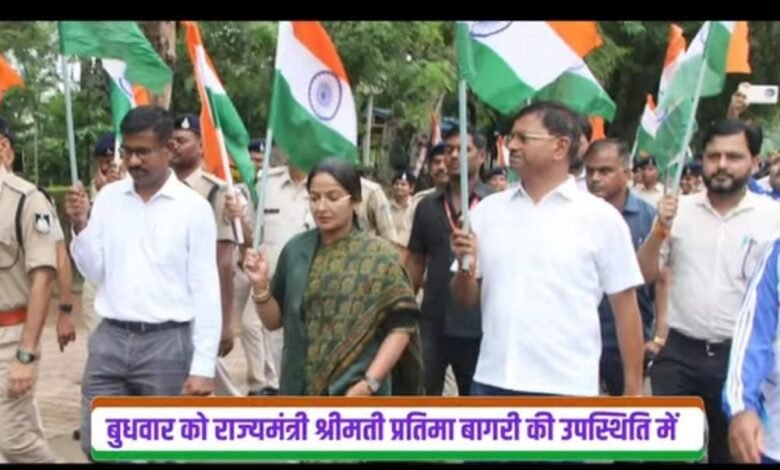 बुधवार को राज्य मंत्री श्रीमती प्रतिमा बागरी की गरिमामयी उपस्थिति में विशाल तिरंगा रैली का आयोजन किया गया। रैली में सैकड़ों स्कूली बच्चे, विभिन्न सामाजिक संगठन, नगर निगम के कर्मचारी, व्यापारी, जनप्रतिनिधि और बड़ी संख्या में नागरिक शामिल हुए।