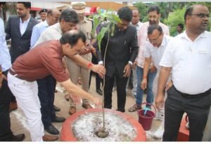 कलेक्टर ने अस्पताल परिसर में आम का पौधा रोपा।
