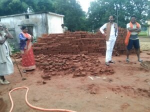 ग्रामीणों का कहना है कि निर्माण कार्य में इतनी खराब गुणवत्ता की ईंटें लगाई जा रही हैं कि हाथ से दबाते ही टूट जाती हैं।